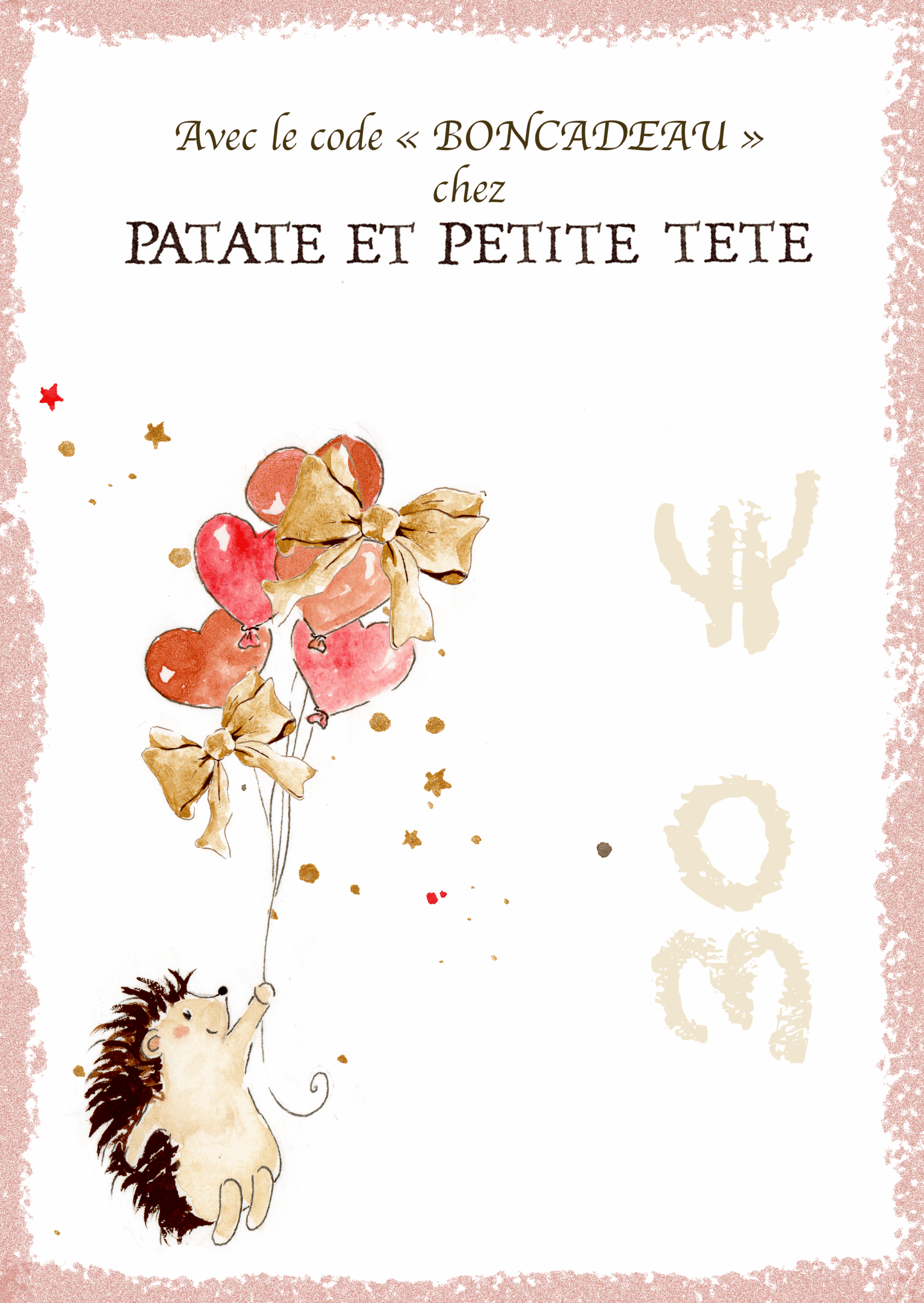 Un bon cadeau de 10 € que vous recevrez par mail avec le code qui permettra de l’utiliser sous forme de petite affichette comme sur la photo afin de pouvoir l’imprimer et la glisser dans une enveloppe avec un doux mot !